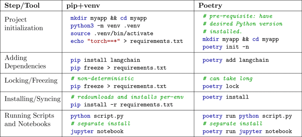 To compare uv with other tools (in this case, pip and poetry), we’ll walk through the common steps of building a Python application and see how much easier it is to use uv. The typical steps for creating a Python app include: