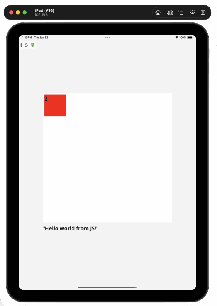 Once the WebView has rendered the HTML, Document Object Model (DOM) manipulation works as well – thanks to JavaScript execution, the DIV color changes from blue to red:
