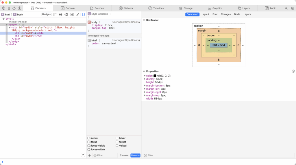 And just like that, any and all web content rendered inside the WebView is inspectable with browser developer tools – developers can manipulate HTML/CSS/JS to their heart’s content: