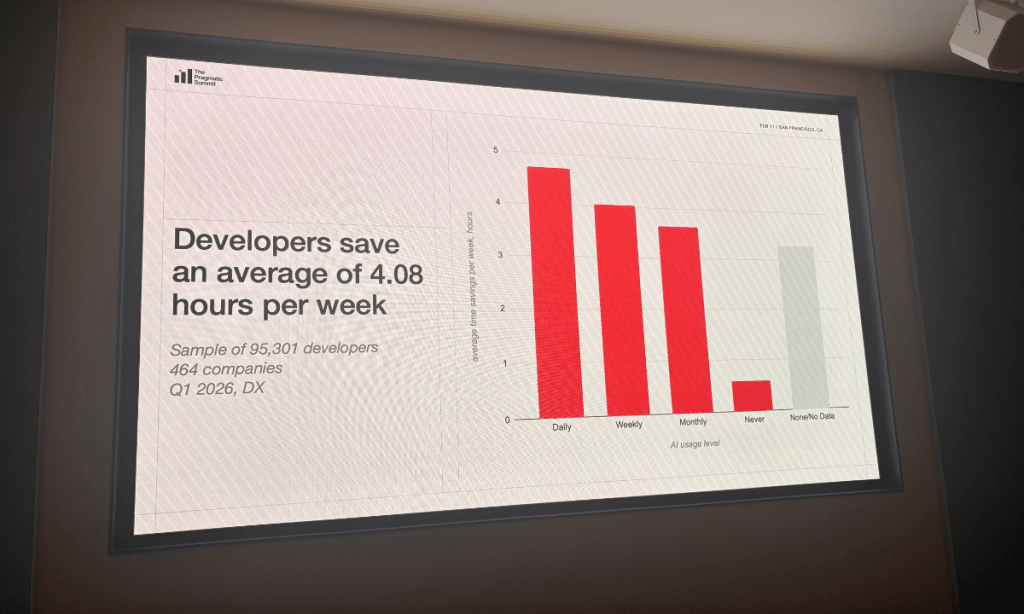 The first thing most people think of with AI assistance is saving time. According to the research, developers say they’re saving about 4 hours a week – pretty much the same as Q2 2025, with Q4 2025 numbers sitting around 3.6-3.7 hours.