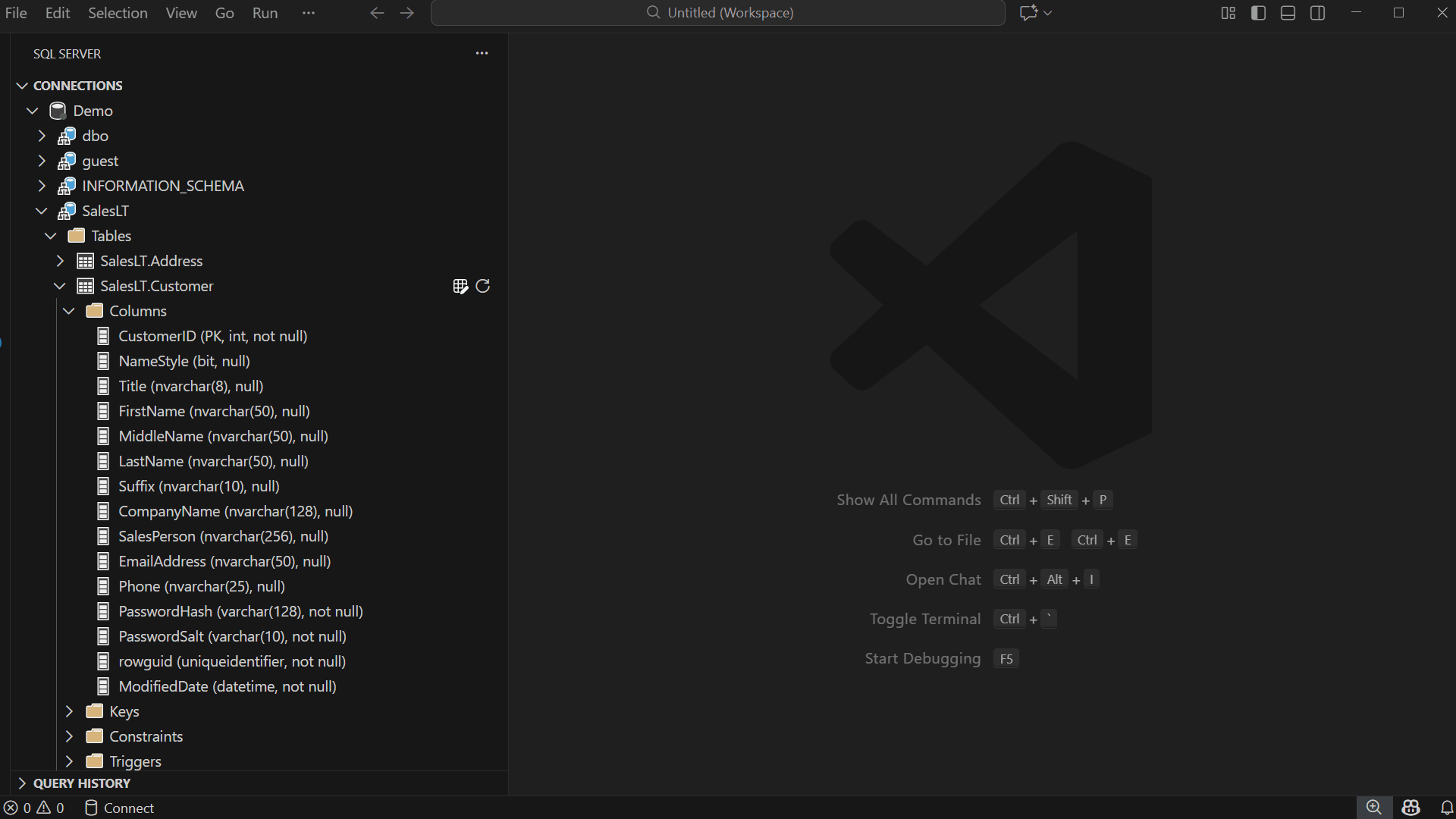Install the MSSQL extension for Visual Studio Code if you haven’t already: Learn how