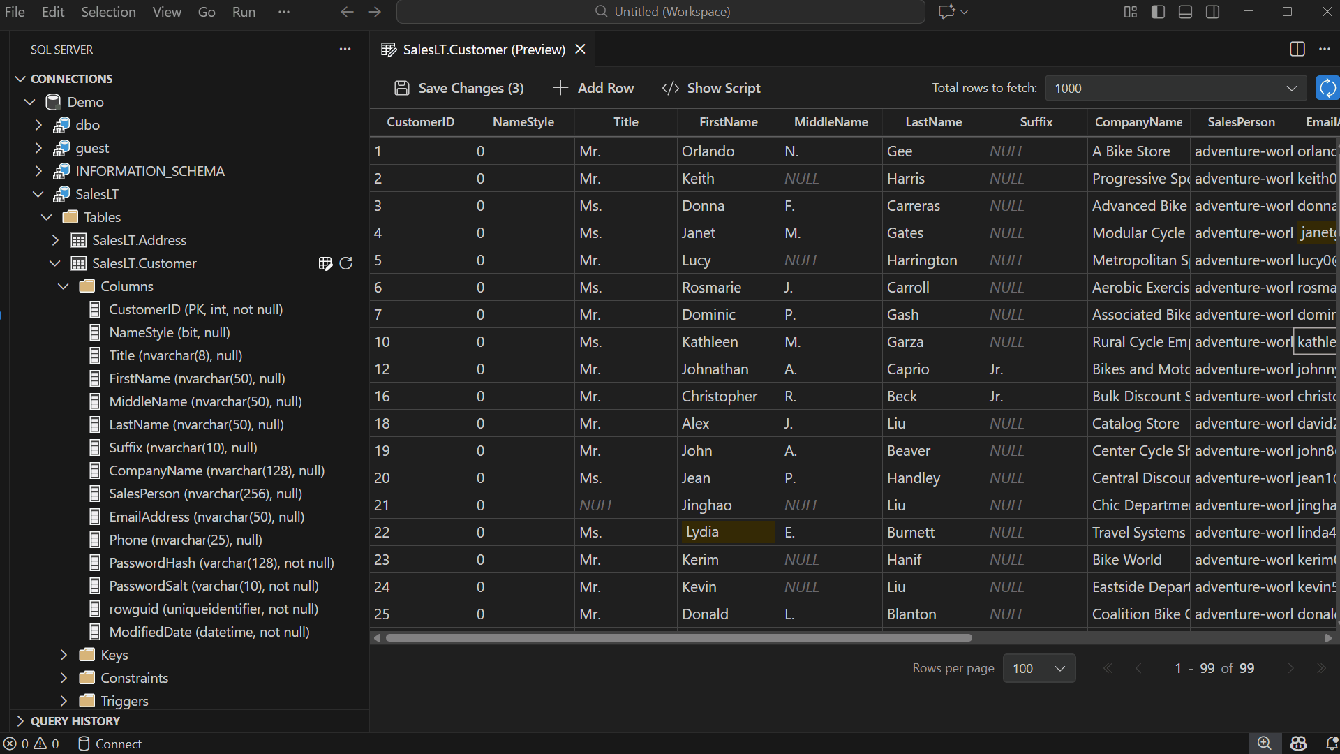 Add & Delete Rows: Use the toolbar to insert new rows or right-click to delete existing ones. Edits appear as pending changes until you save.