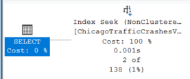 Table 'ChicagoTrafficCrashesVehicles'. Scan count 1, logical reads 3, physical reads 1...