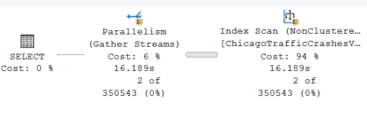 Table 'ChicagoTrafficCrashesVehicles'. Scan count 9, logical reads 10748, physical reads 0 ...