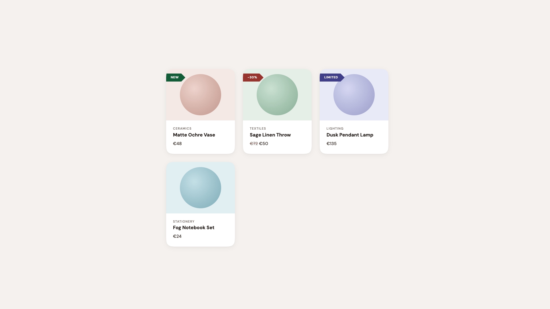 Demo 1: Product Cards With Ribbon Badges