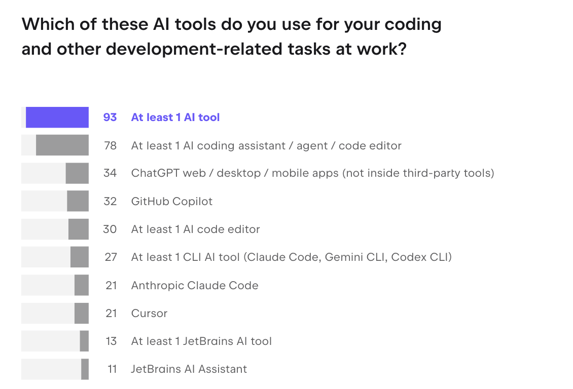Recent surveys conducted by JetBrains indicate that AI is now widely used in software development, with workplace usage exceeding 90% and a large majority of developers already incorporating it into daily workflows. Developers rely on these tools for writing code, debugging, and navigating unfamiliar systems.