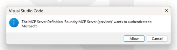 Foundry MCP Server requires Entra ID authentication and only accepts Entra tokens scoped to https://mcp.ai.azure.com. All actions run under the signed-in user’s Azure RBAC permissions, ensuring that operations cannot exceed user rights, and every activity is logged for auditing. Tenant admins can enforce access control through Azure Policy Conditional Access for token retrieval, providing oversight of Foundry MCP Server usage.