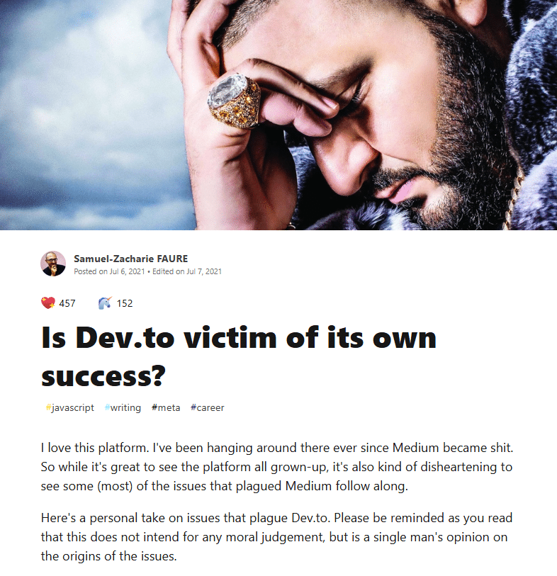 On the other hand, Samuel Zacharie raised the question on Dev.to itself: Has the platform become a victim of its own success? He argues that as Dev.to expanded, its content increasingly leaned toward beginner-focused, repetitive, and bootcamp-style posts, the kind that are easy to produce and tend to perform well in search rankings.